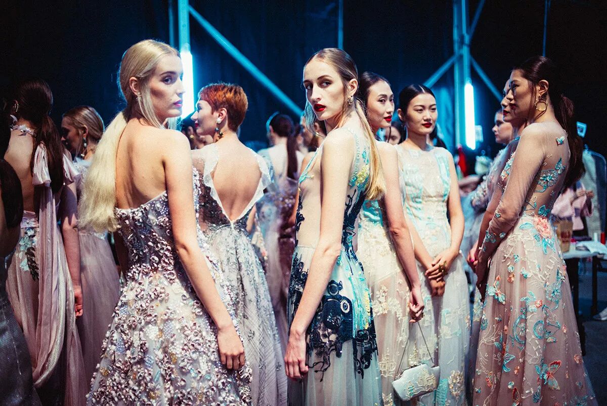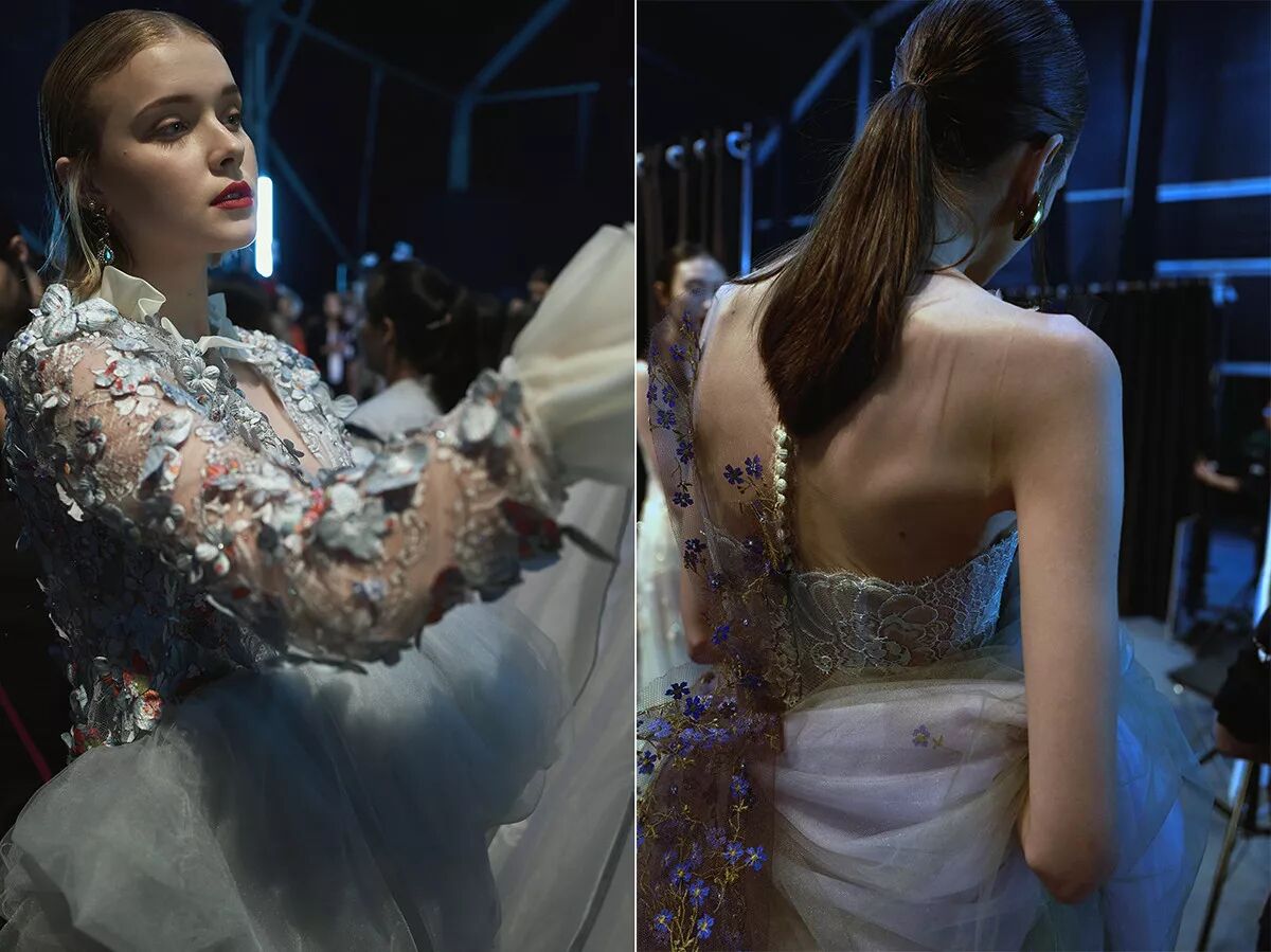 在上海开启时装创作生涯的设计师王锋以这座被誉为“东方巴黎“的城市为灵感,创作出了主题为”海上-上海“的2018春夏高级定制系列。从开埠初期的十里洋场、到摩登新时代的高楼华厦,在一针一线、一勾一画间,这座国际都市的百年沧桑浓缩于轻盈柔美的蕾丝上,再经设计师的巧妙剪裁,包裹于穿梭在这座城市大街小巷的百态女性身上。